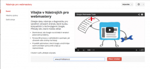 1. V hlavní záložce Domů vložte do pole pod úvodním textem URL adresu vašeho webu, který chcete aktivovat nástroj Webmaster Tools (screen 2).